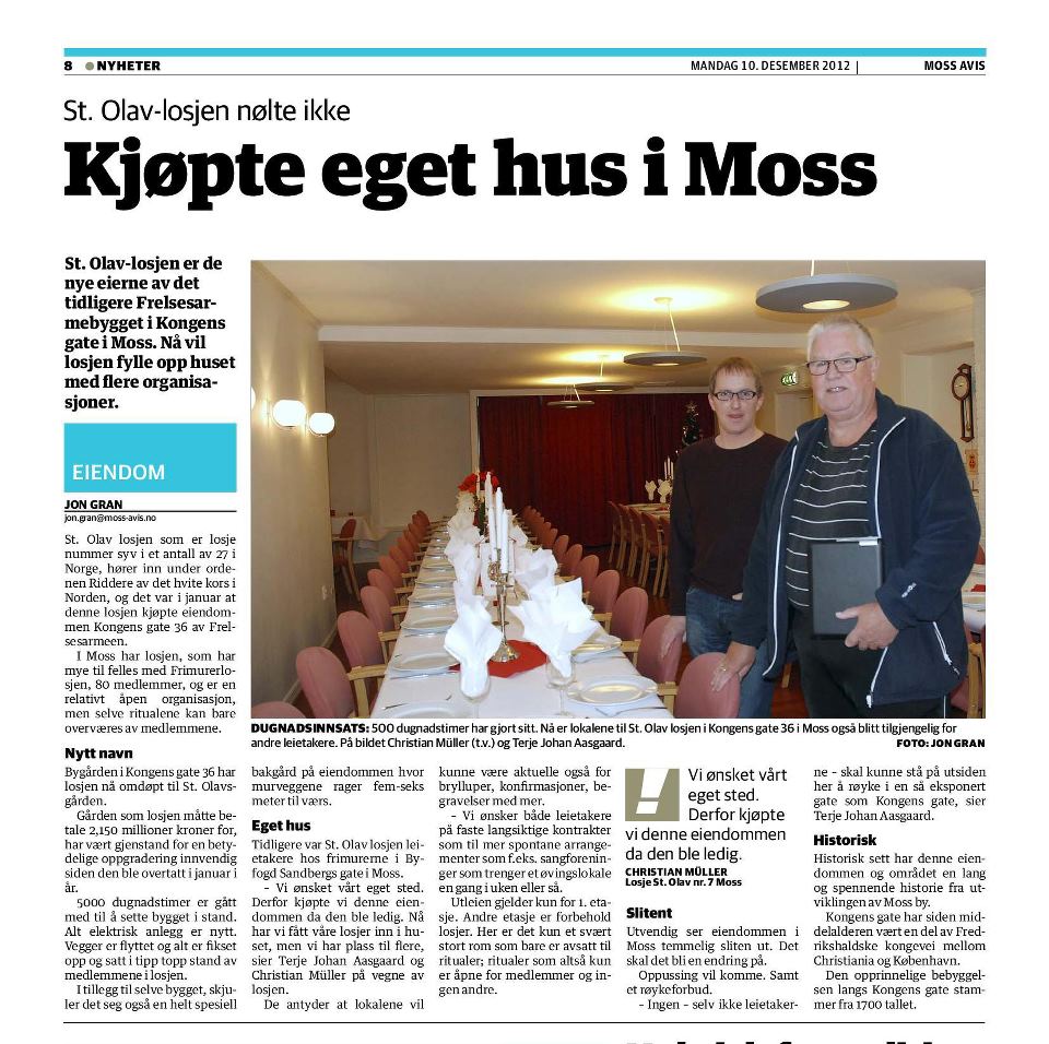 Velkommen til Losje St.Olav VII Moss! På sidene våre vil du finne mer om Losje St.Olav VII Moss og St.Olavsgården (Kongensgt 36). Les mer